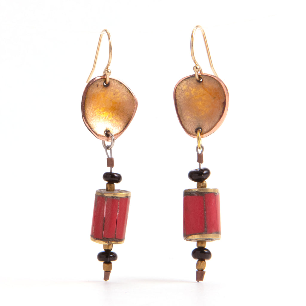 Copper, Gold Fill, Onyx, Tibetan Charm