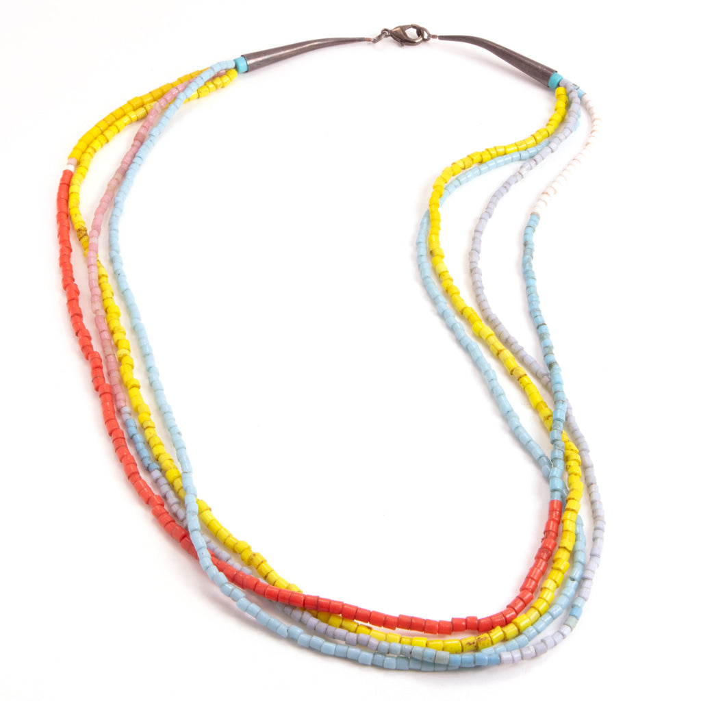 These beautiful East African beads have been restrung and connected with sterling silver horn beads and a sterling silver clasp. Sterling silver has been blackened and polished.