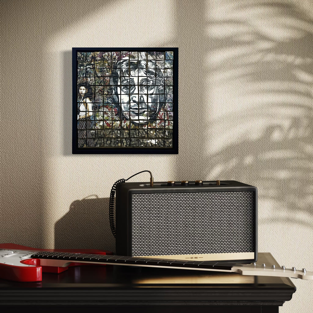 Prague street art tiled and recomposed. Each tile is an individual photograph and suspended with a slight juxtaposition.Float framed for depth